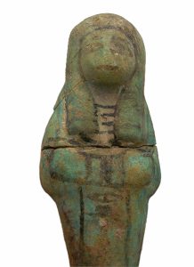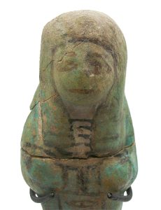 Egyptian Turquoise Blue Faience Shabti with Hieroglyphic Text