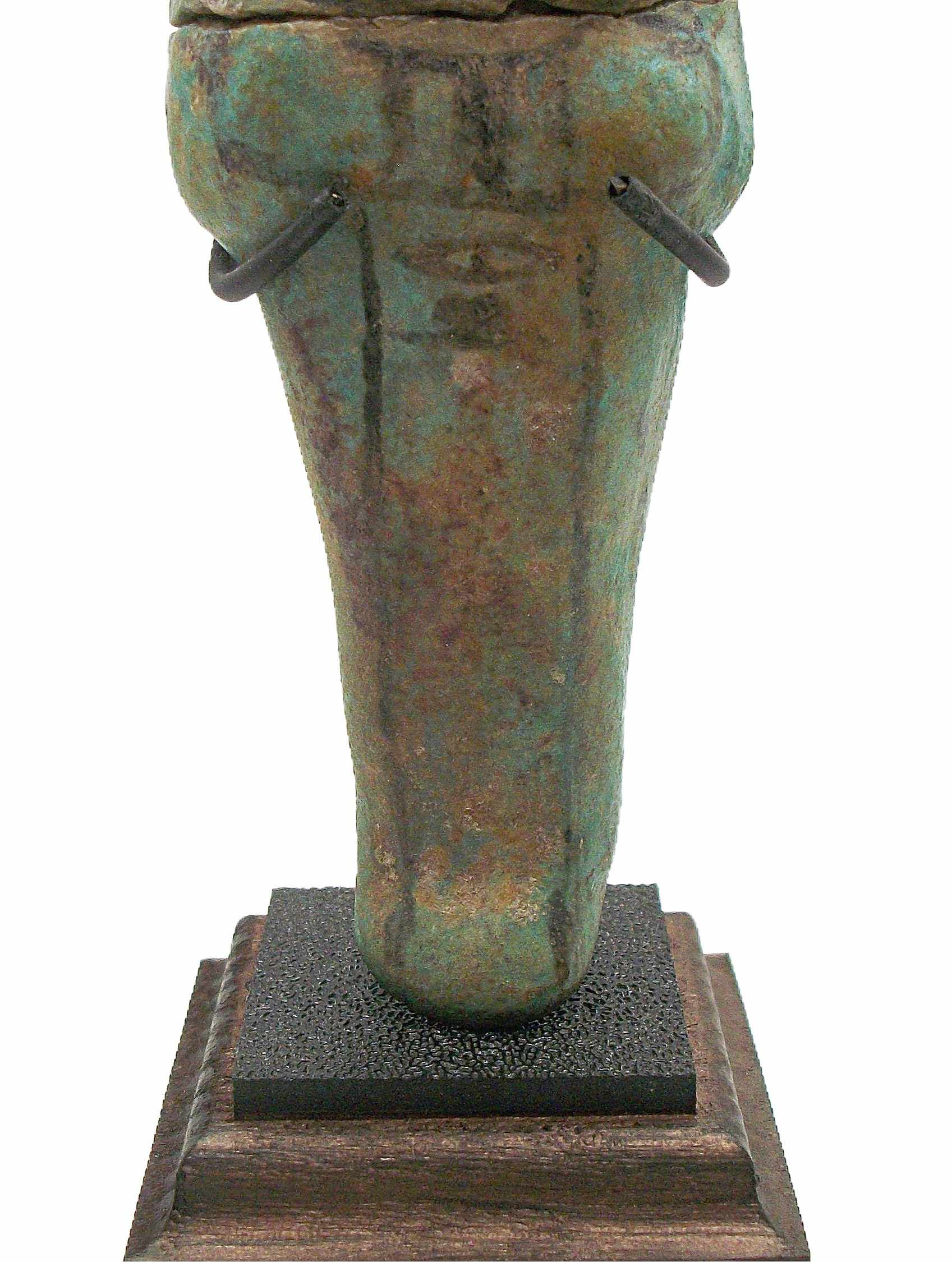 Good ancient condition with repair to break in upper body. Great colouring with remains of earth encrustation stains. Presented on a custom made stand.