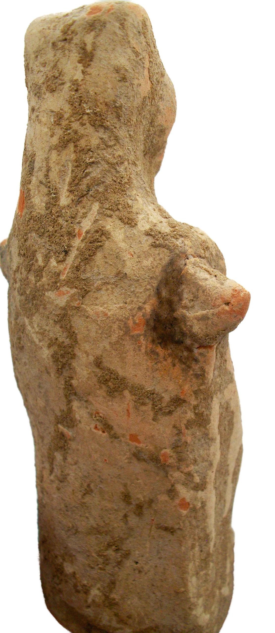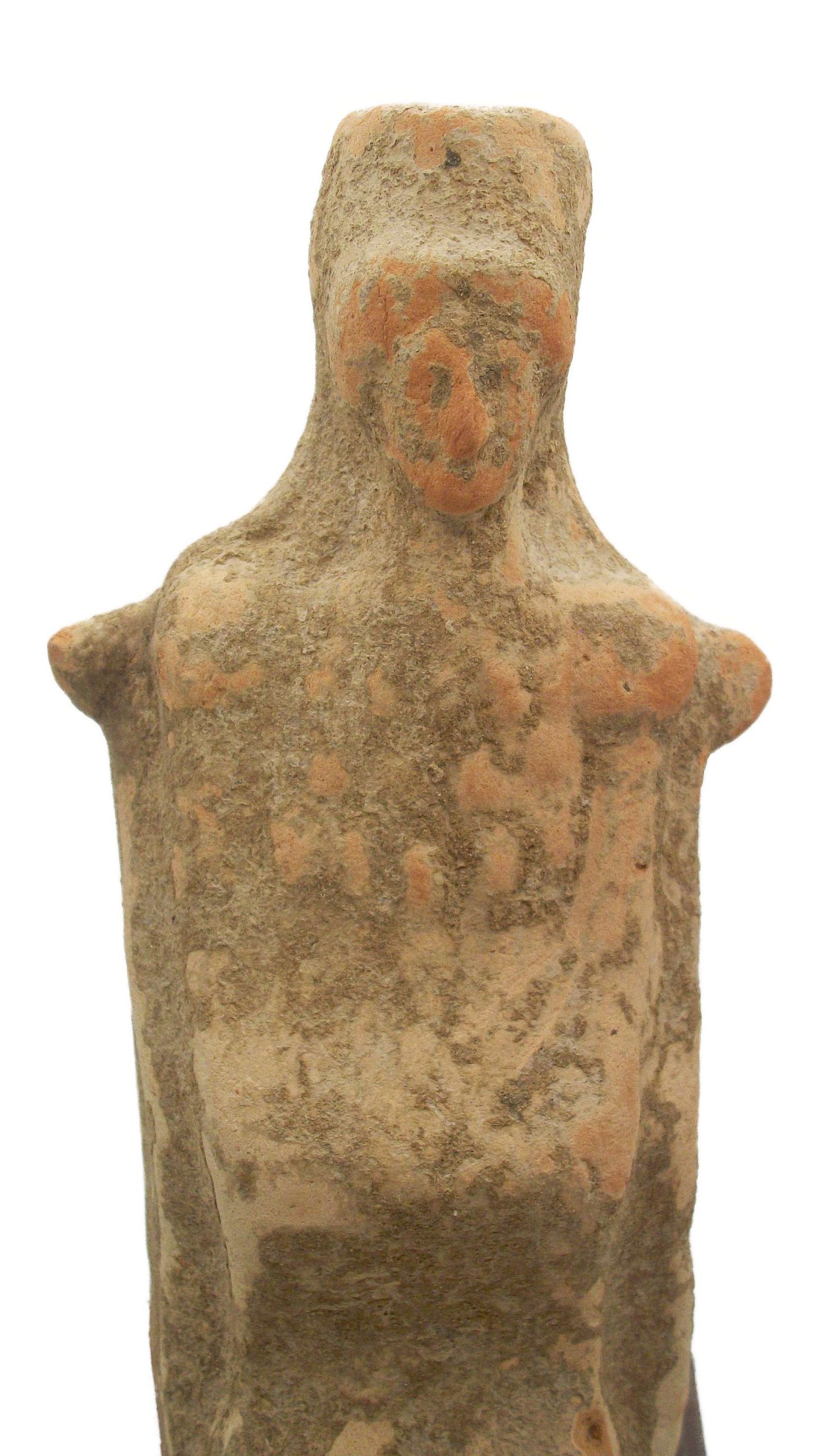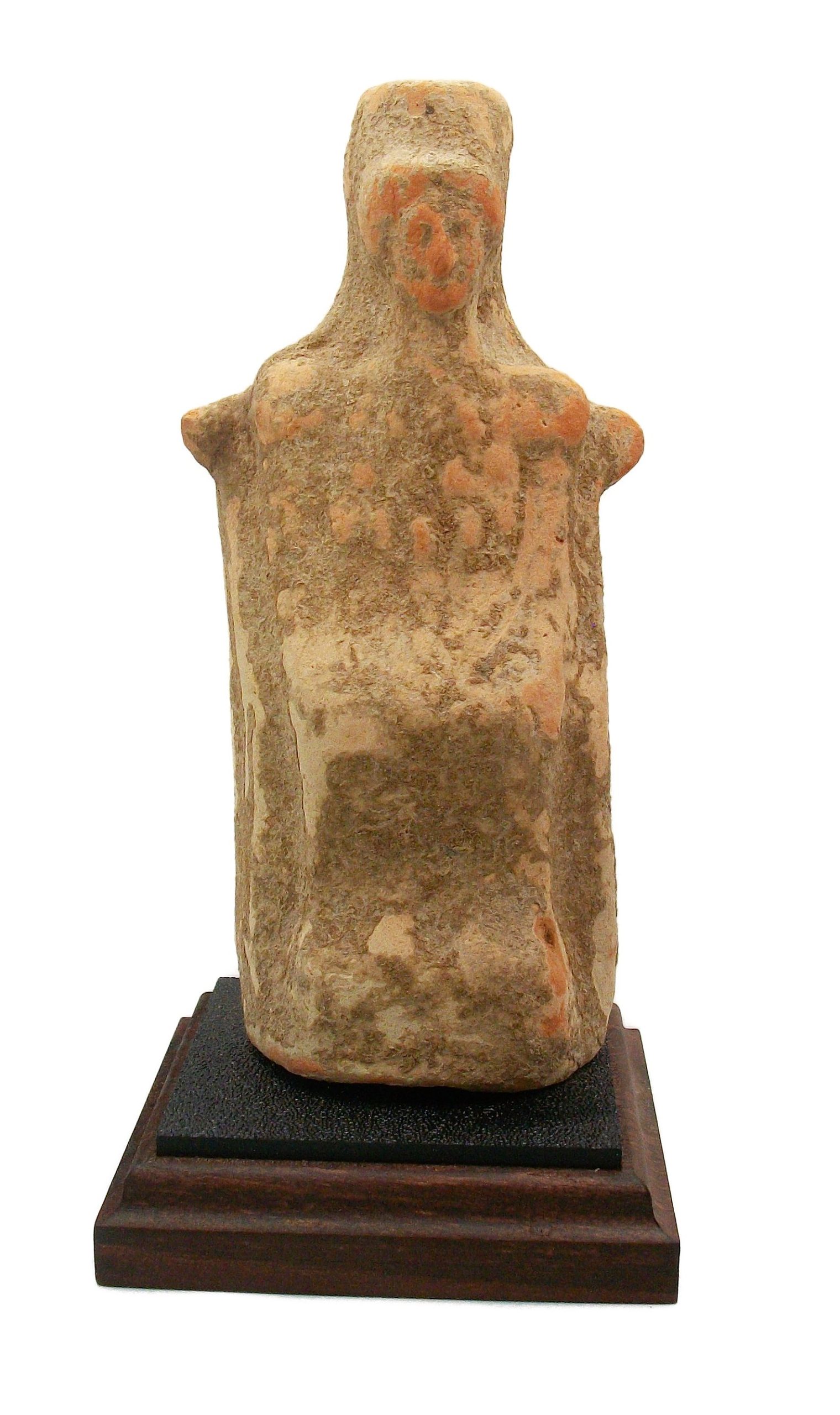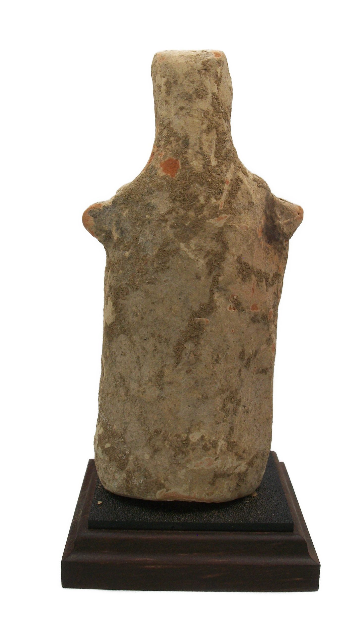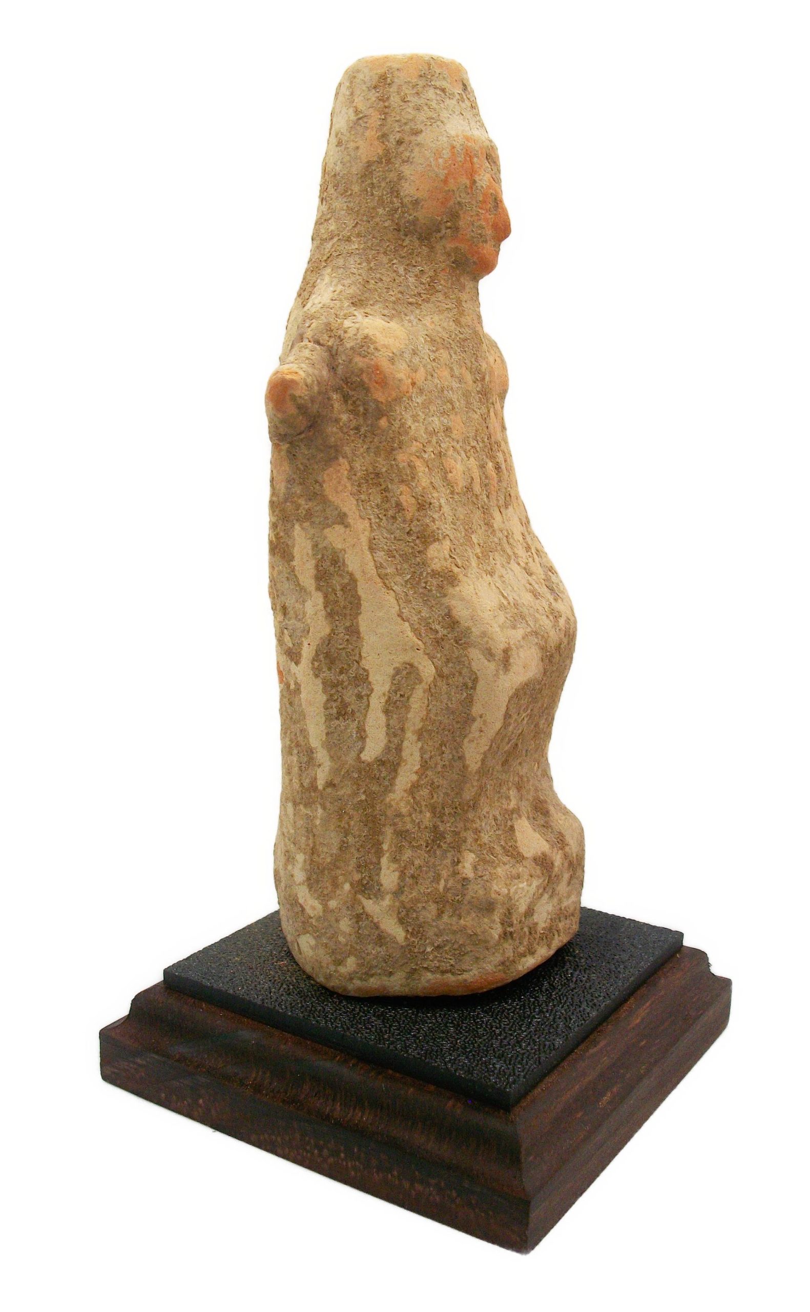Good ancient condition . Earth accretions covering object. Presented on a custom made stand. Small repair to nub on right shoulder as per photos. Doesn’t detract from the figure.