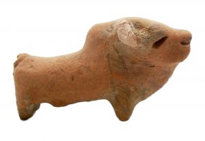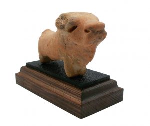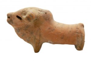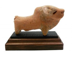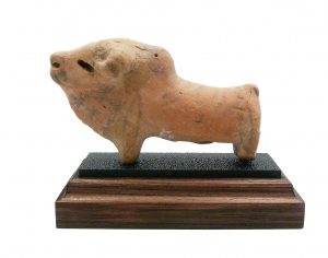 Indus Valley Civilization terracotta bull with remains of painted black decoration. Modelled in the round with indented eye and nostril detail.