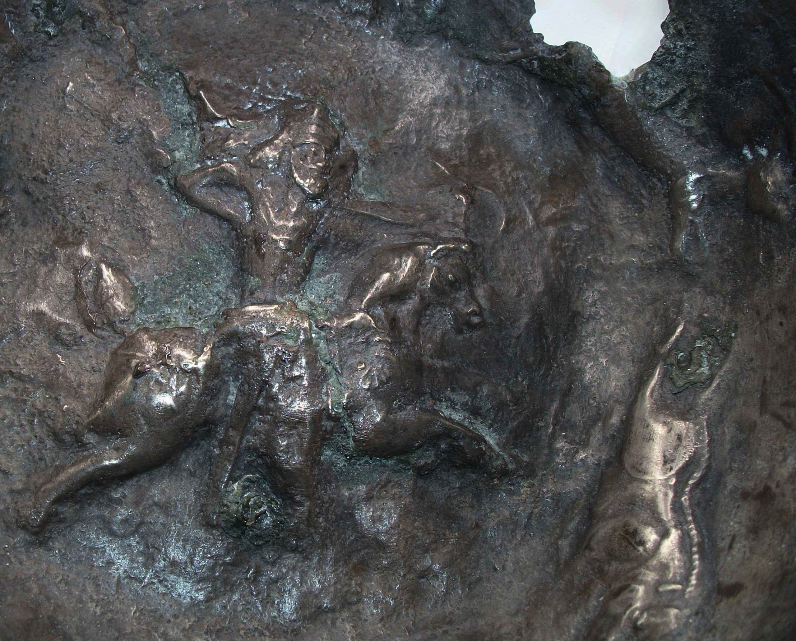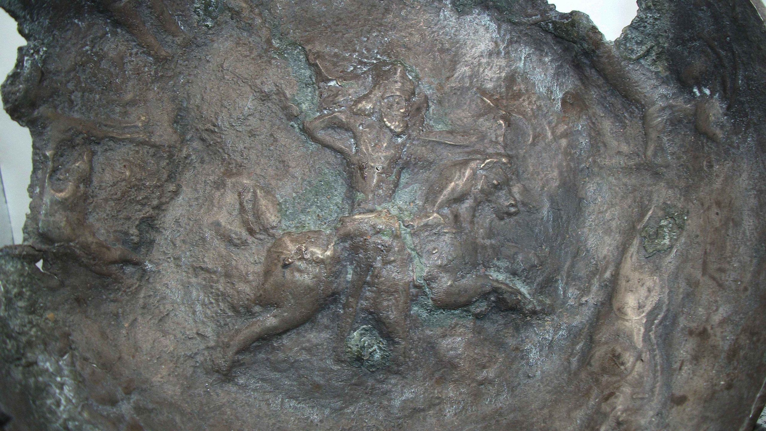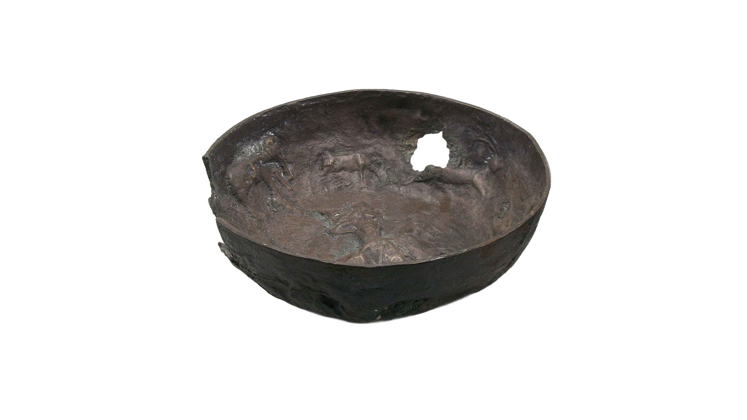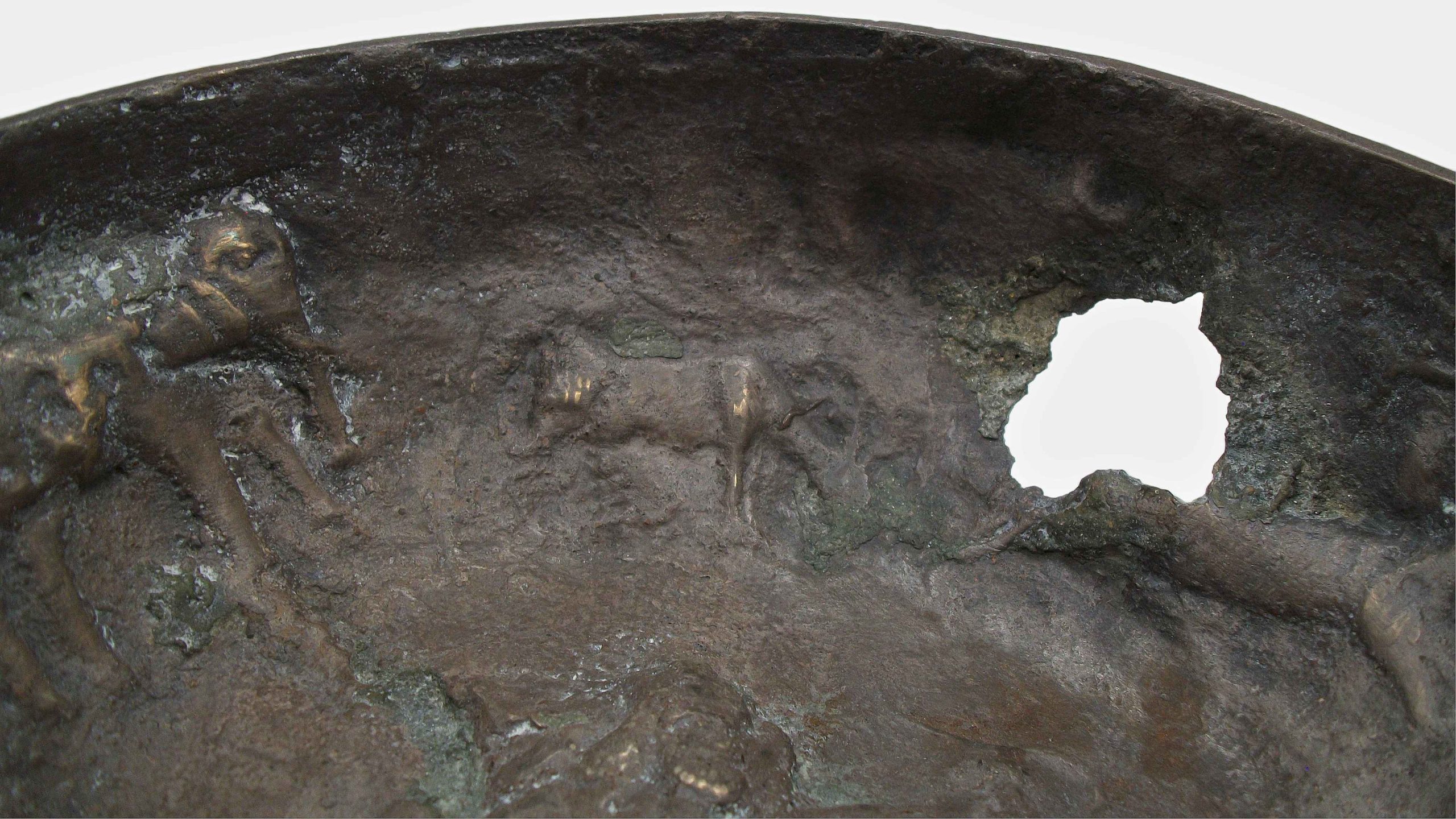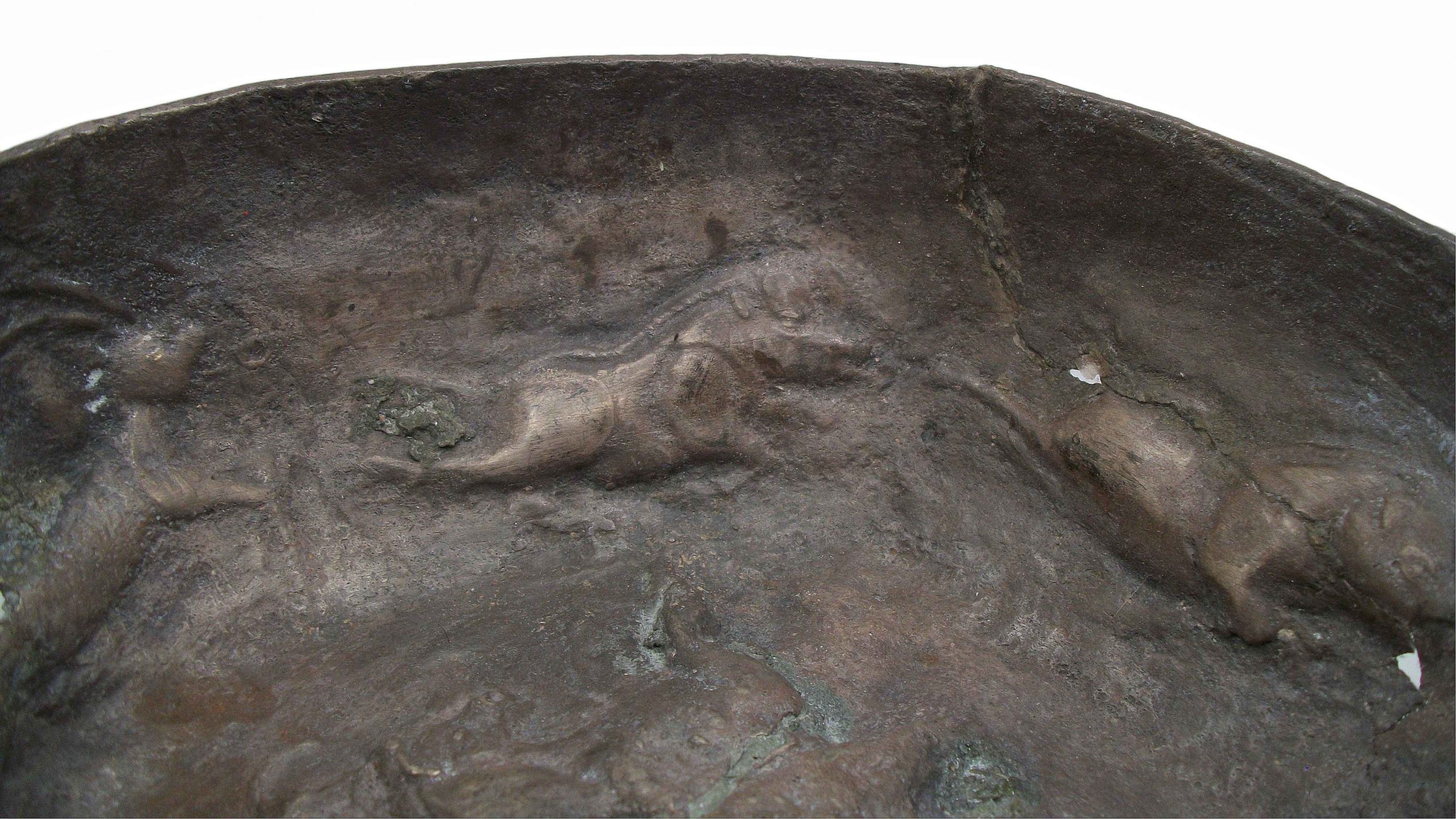 Sassanian Silver Bowl with Repousse Horsed Archer and Animals Decoration