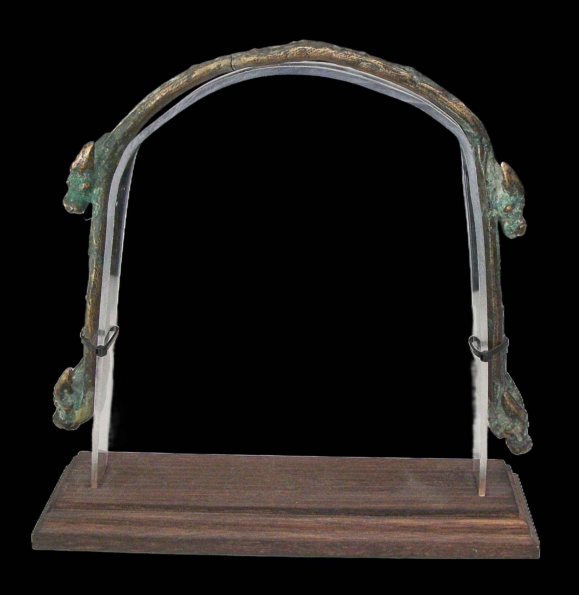 Mongolian Ordos Period Bronze Bucket Handle with Bull and figure decoration.